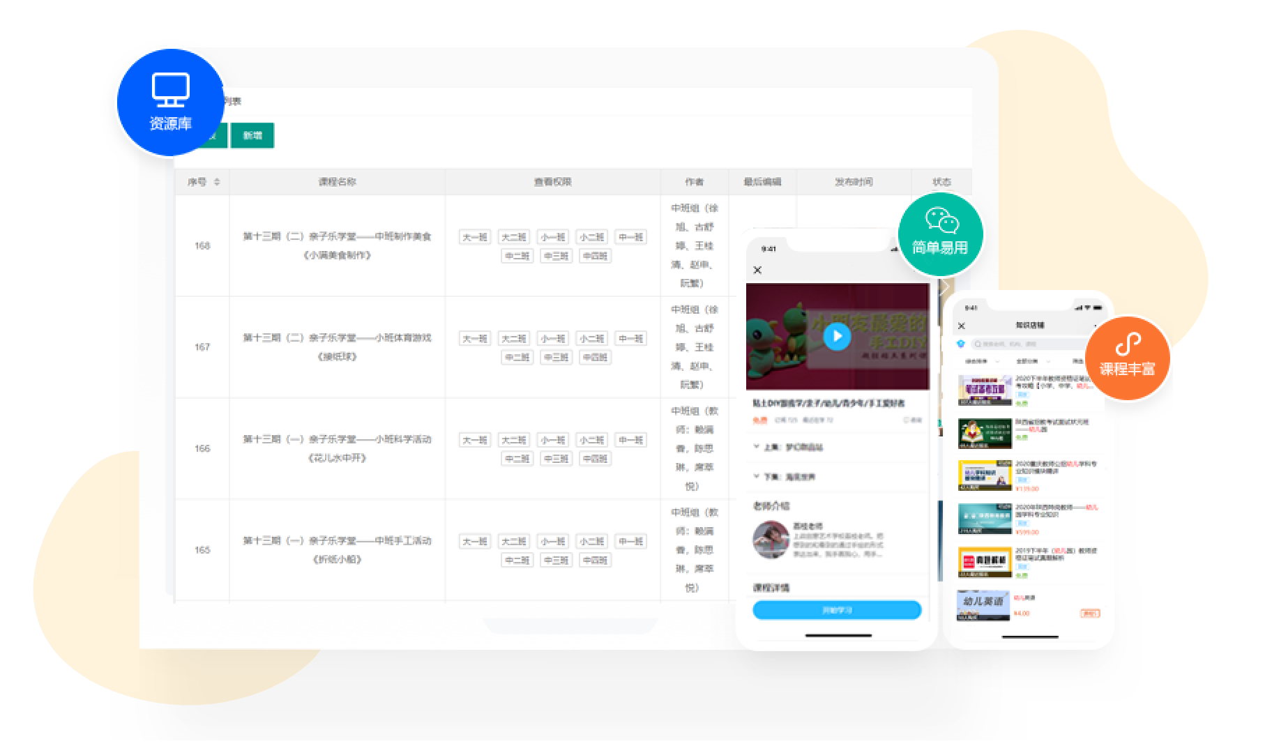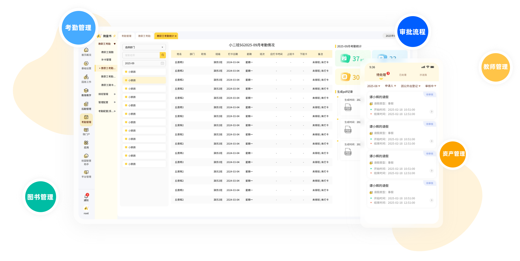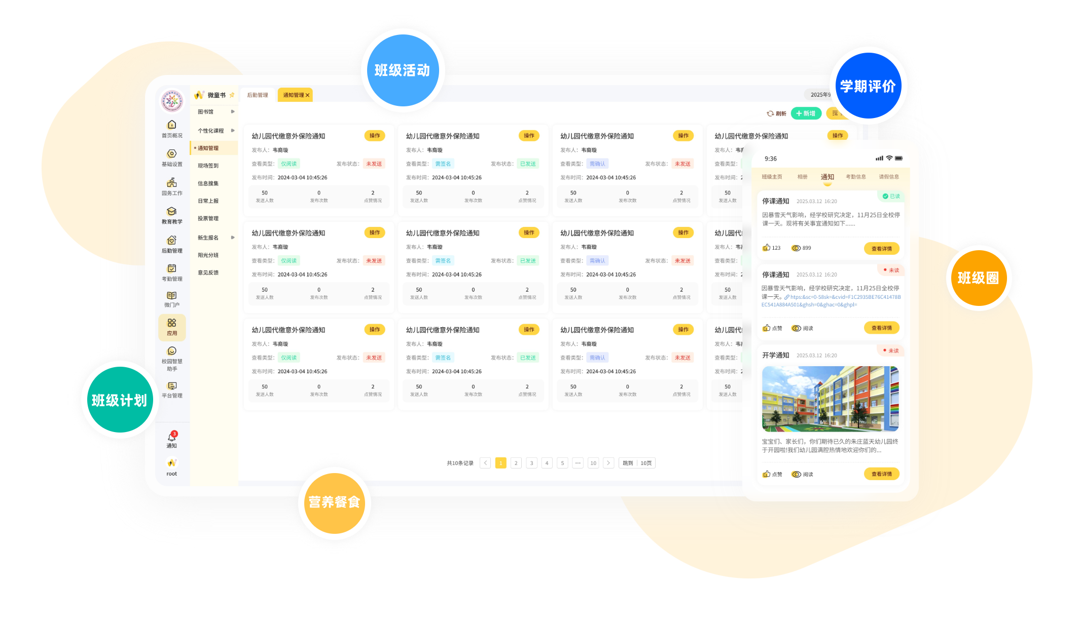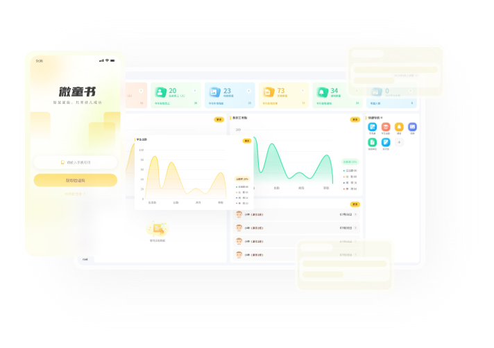 微童书对数百家幼儿园进行了详细追踪调研,研制园务管理功能(资讯公告、资产管理、人事管理、学生管理、活动管理、审批流程、考勤管理、档案管理、图书管理等)更加易用的用户体验设计,帮助园方提高工作效率,提升幼儿园科学运营管理水平